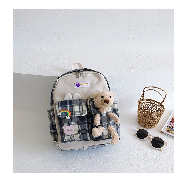 Balo bên ngoài gắn gấu rất đáng yêu.